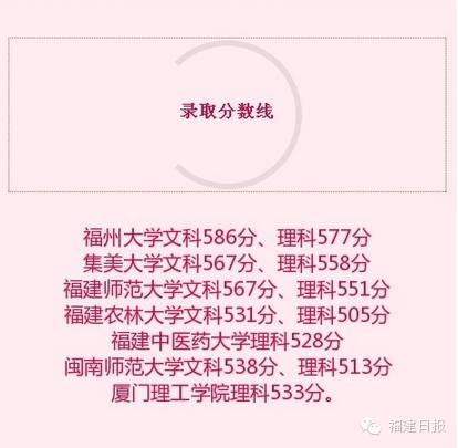 理工类本一批次常规志愿投档最低分:北京大学683分,清华大学681分,厦门大学630分,福州大学594分。