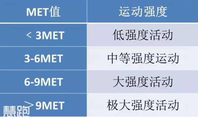 MET是评价绝对运动强度的标准指标。不同MET值代表不同运动强度。