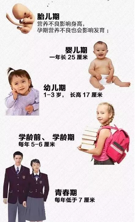 母亲妊娠后,营养因素就已经开始发挥作用,年龄越小,营养对孩子身高影响的作用越大。