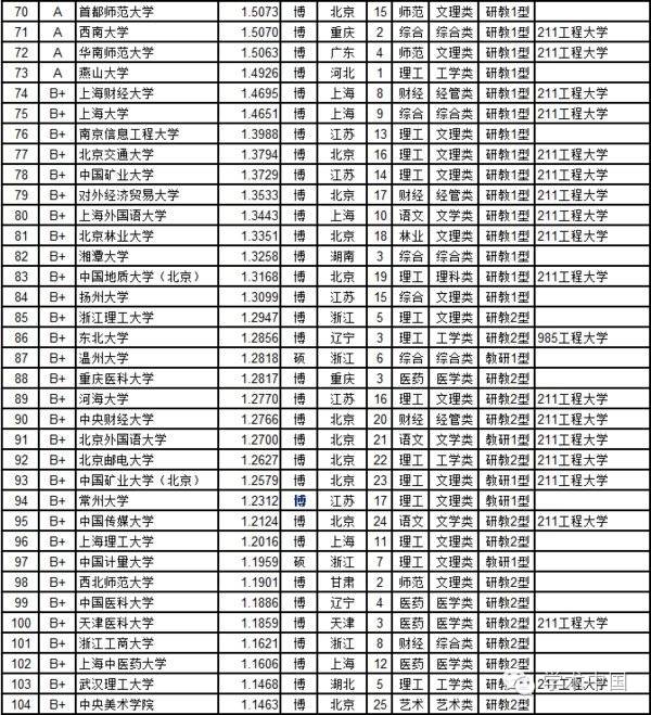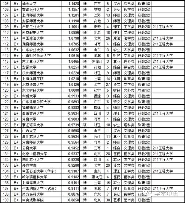 普通高校112所211工程大学(含985工程大学),有30所没有进入教师学术水平前112名,占211工程大学的26.79%。30所没有进入教师学术水平前112名的211工程大学是:中南财经政法大学、东北林业大学、安徽大学、西南交通大学、云南大学、北京中医药大学、四川农业大学、中国石油大学(华东)、中国地质大学(武汉)、西南财经大学、中央民族大学、东北农业大学、长安大学、广西大学、郑州大学、南昌大学、河北工业大学、新疆大学、大连海事大学、太原理工大学、辽宁大学、石河子大学、北京体育大学、内蒙古大学、贵州大学、海南大学、西藏大学、宁夏大学、延边大学、青海大学。