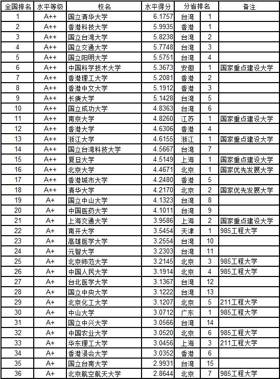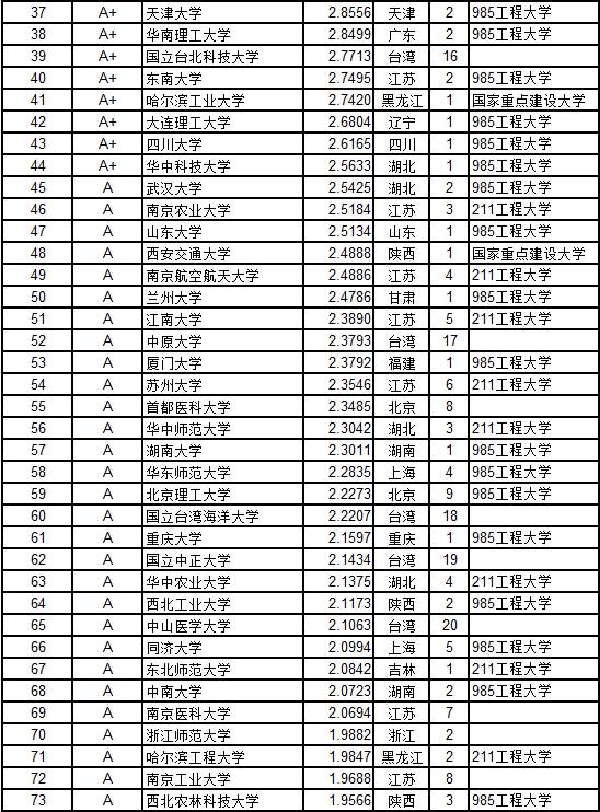 本排行榜来源于中国管理科学研究院《中国大学评价》课题组组长武书连著、中国统计出版社2016年4月出版的《挑大学 选专业—2016高考(精品课)志愿填报指南》。