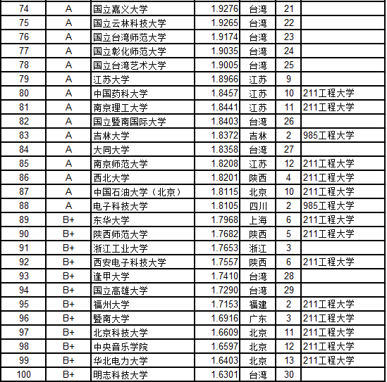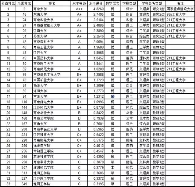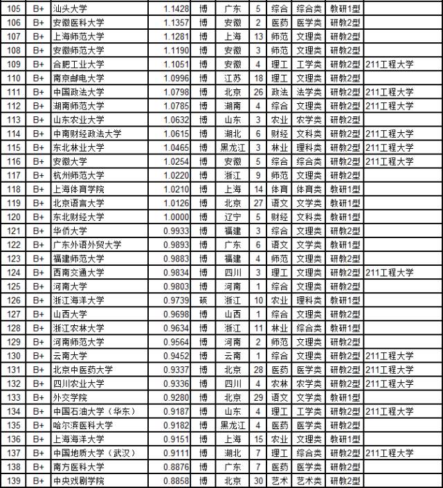 (B级以下大学排名和等级见分省排行榜)