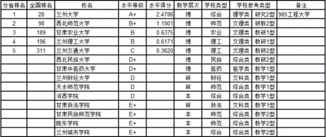 甘肃省大学教师学术水平排行榜