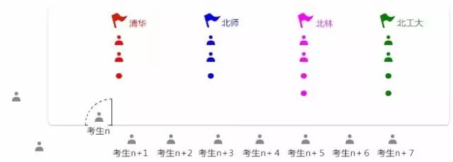 顺序志愿是指在同一个录取批次设置的多个院校志愿有先后顺序,如第一志愿、第二志愿等,每个志愿只包括一所院校。顺序志愿的投档原则是“志愿优先,从高分到低分”,把考生的高考志愿作为录取投档的第一要素,最大程度地满足考生的志愿要求。顺序志愿投档时,对选报同一志愿院校的考生按院校确定的录取原则、调档比例从高分到低分进行投档,也就是说每所院校各排各的队。