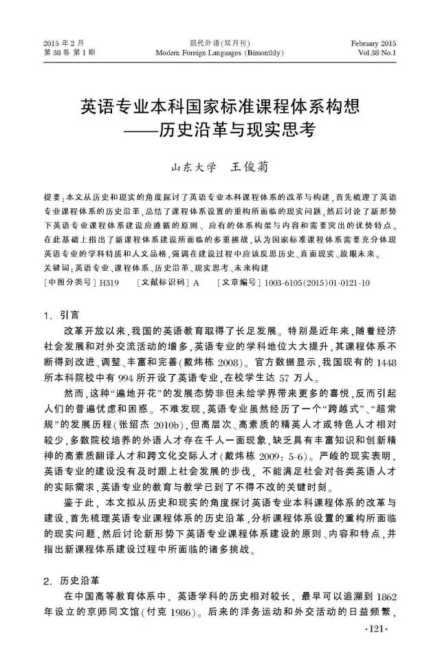 英语专业本科国家标准课程体系构想—历史沿革与现实思考