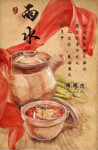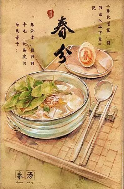 插画师林Caroline根据每一节气与当令食材绘制了节气美食图。下面就让我们边学节气英文表达,边看节气美食吧!