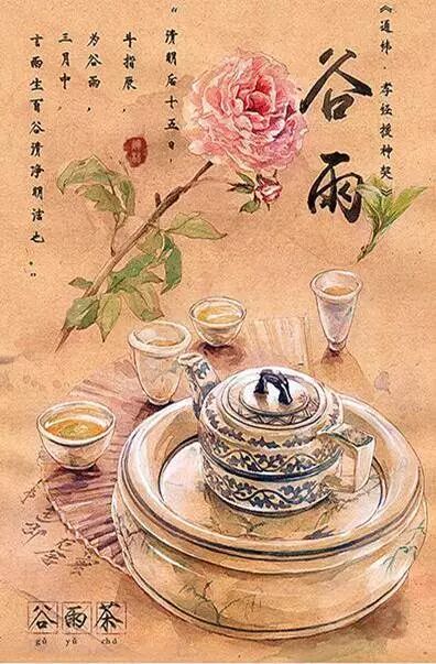传说谷雨这天的茶喝了会清火、辟邪、明目等,所以南方有谷雨摘茶习俗,谷雨这天不管是什么天气,人们都会去茶山摘一些新茶回来喝,以祈求健康。