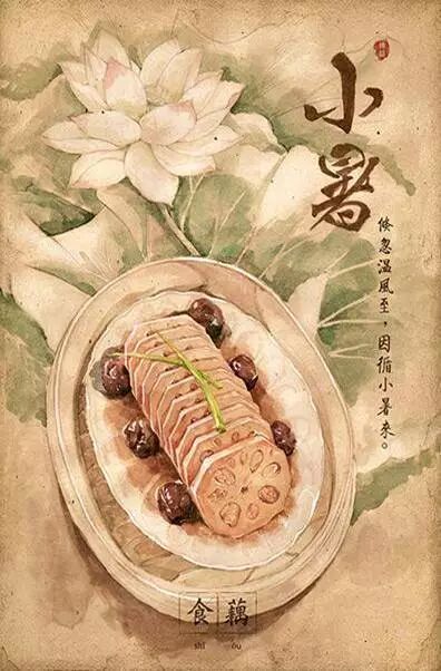 民间有小暑吃藕的习惯,藕具有清热养血除烦等功效,适合夏天食用。鲜藕以小火煨烂,切片后加适量蜂蜜。