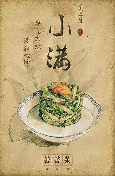 小满寓意是丰收的到来,大麦、冬小麦等夏收作物已经结果,籽粒渐见饱满,但是还没有成熟,正是青黄不接的时候,所以叫“小满”。因此在过去,很多百姓不得不用苦菜来充饥,吃苦菜也就成了小满节气的独特食俗。