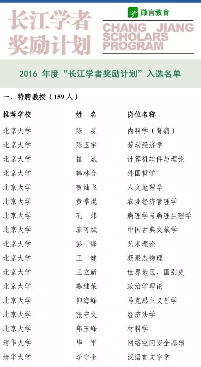 快讯!2016长江学者名单公布