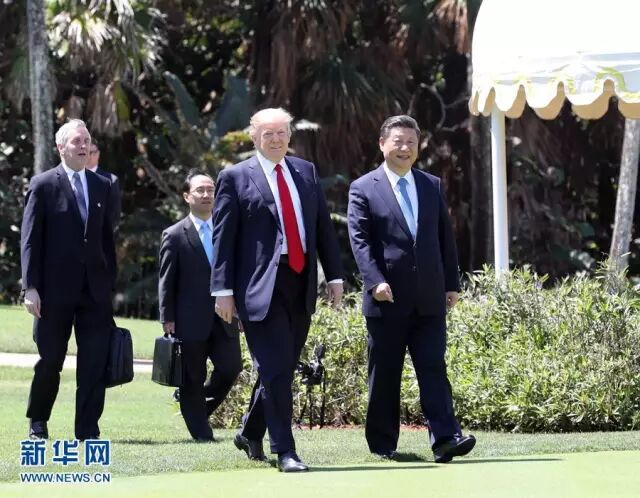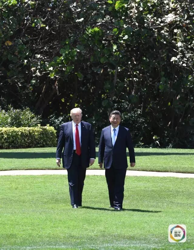 会晤后,习近平同特朗普到秀丽宜人的海湖庄园中散步,在轻松友好的气氛中继续就两国友好合作进行讨论。