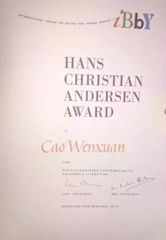 国际安徒生奖证书