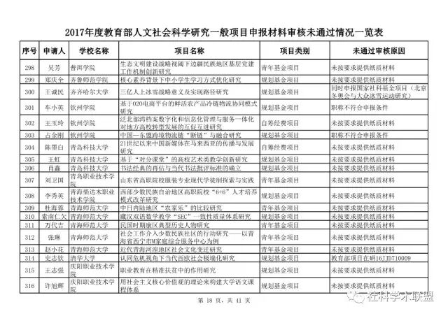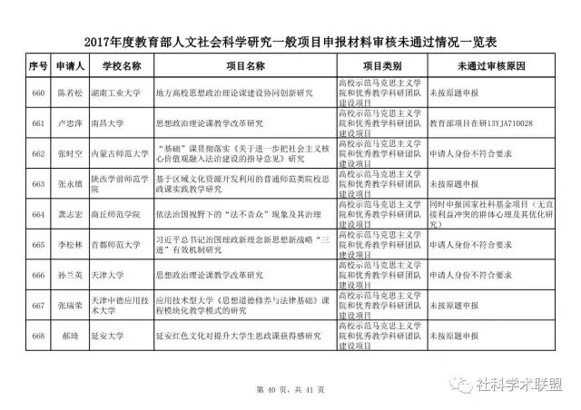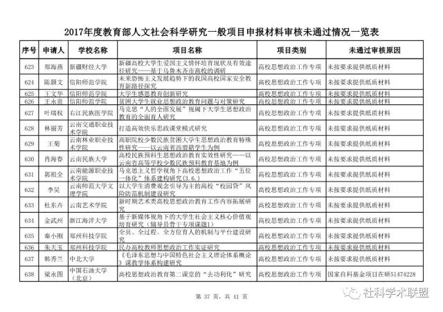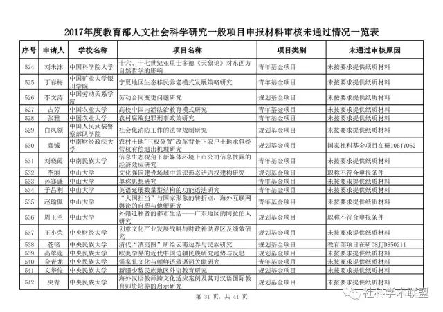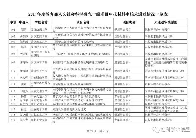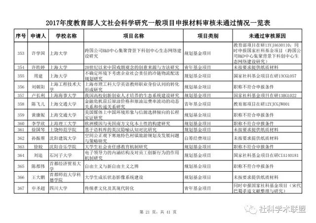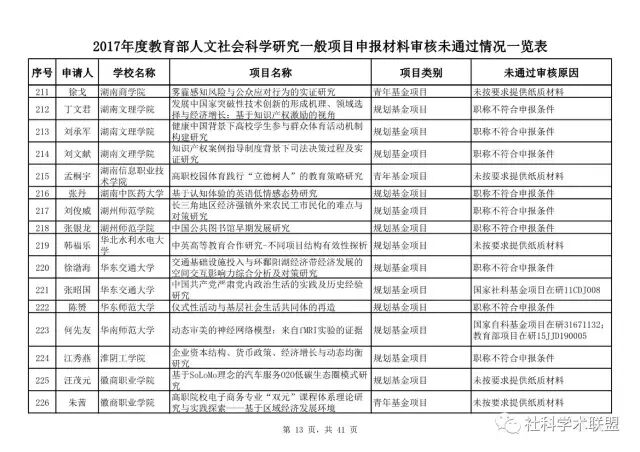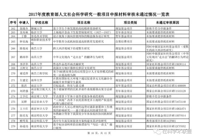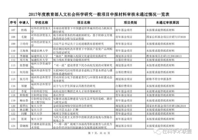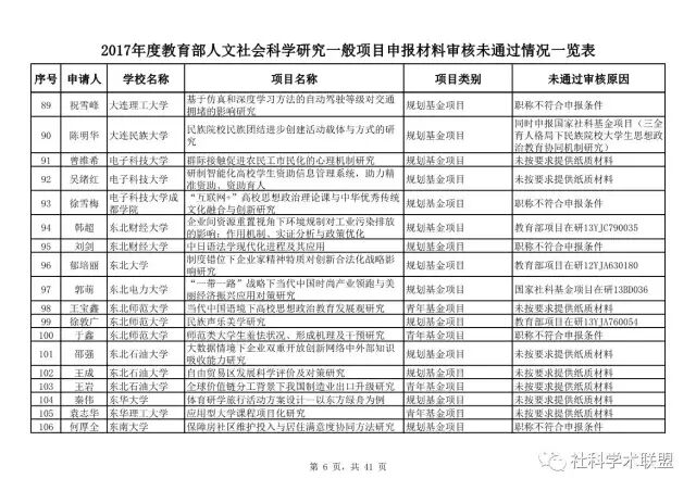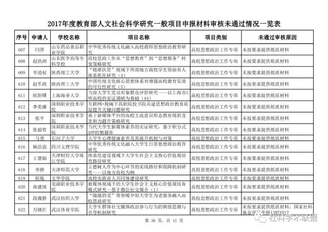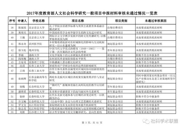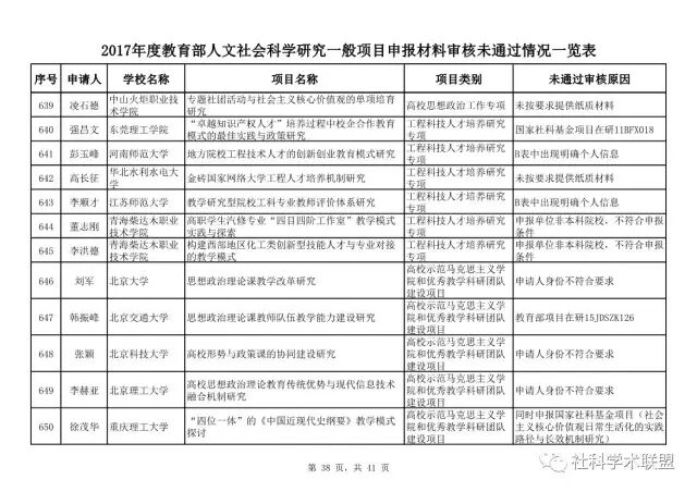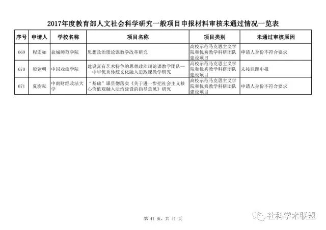 教育部公布2017年人文社科一般项目申报材料审核情况,671项不合格