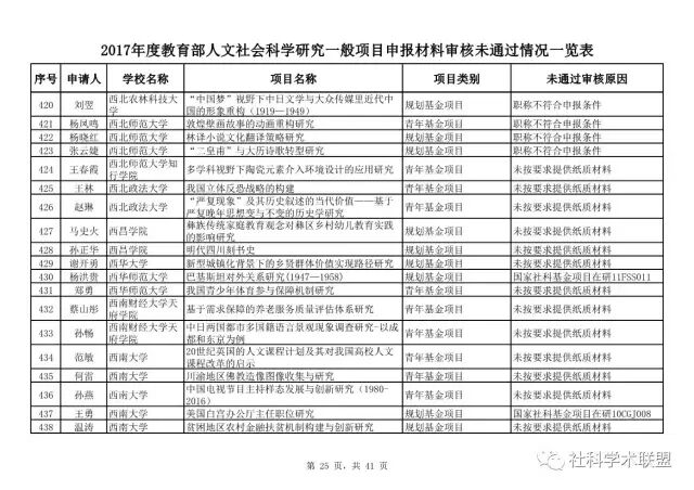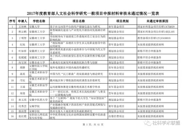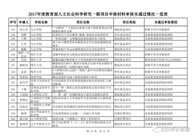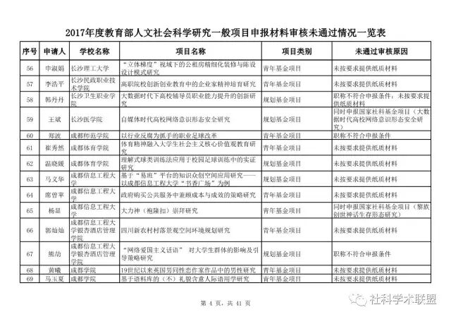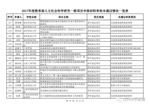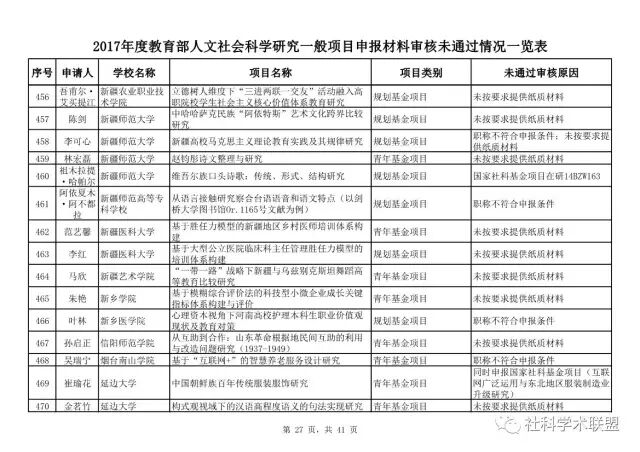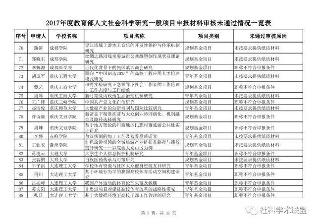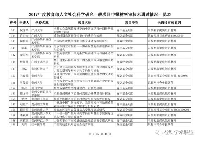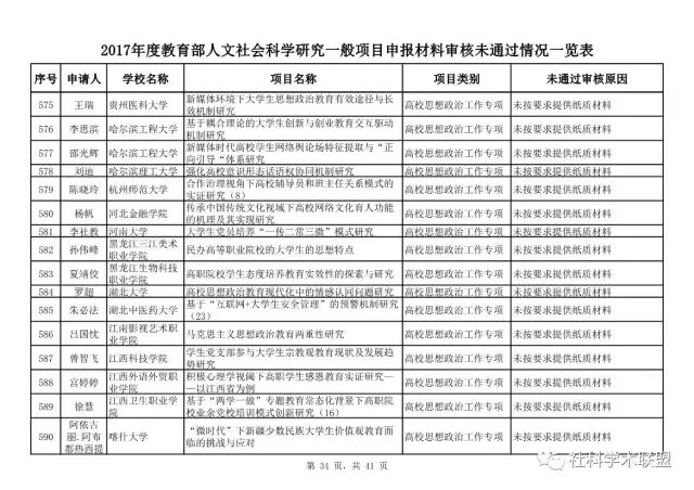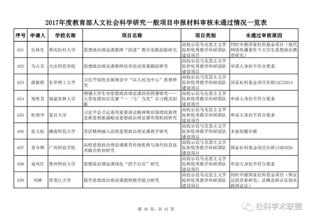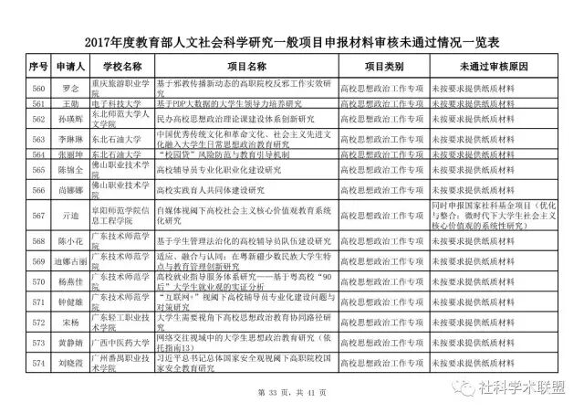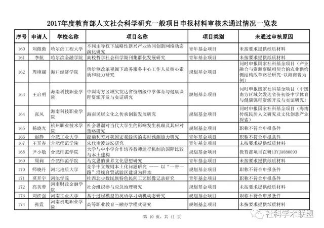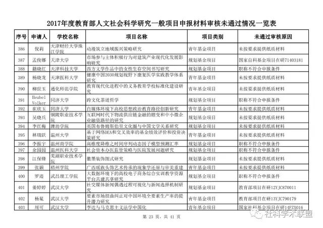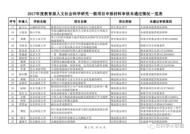 教育部公布2017年人文社科一般项目申报材料审核情况,671项不合格