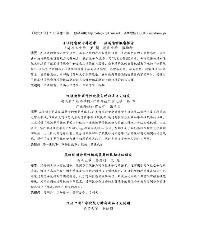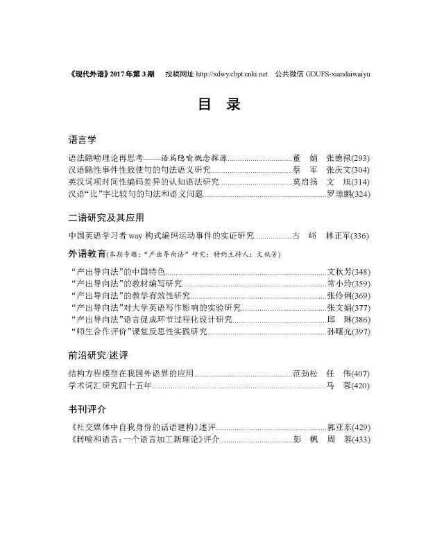 《现代外语》2017年第3期目录和摘要