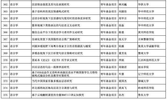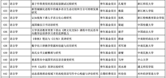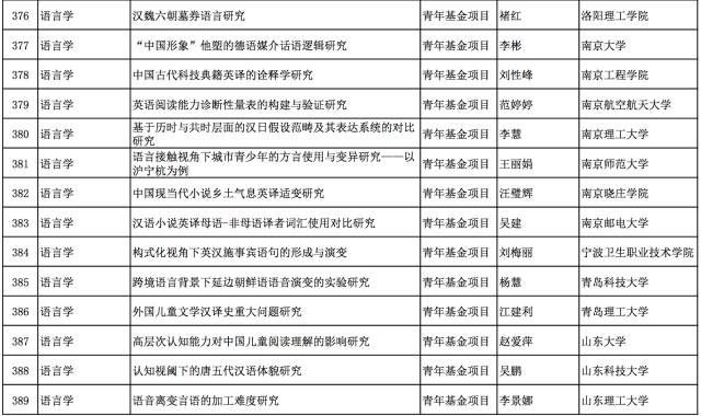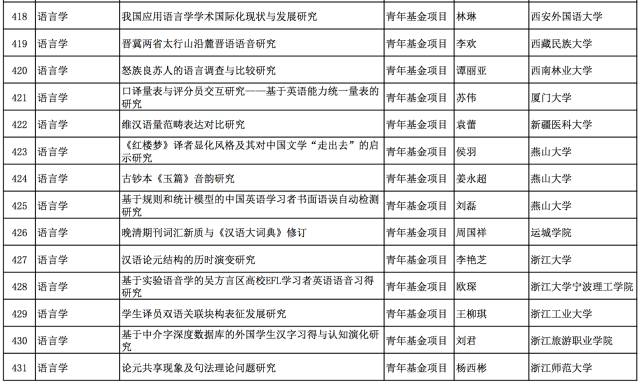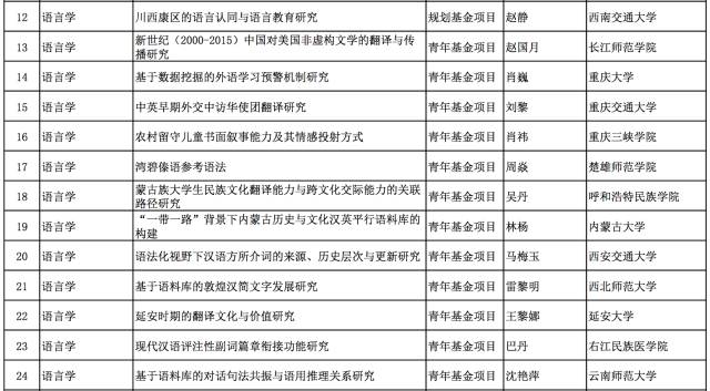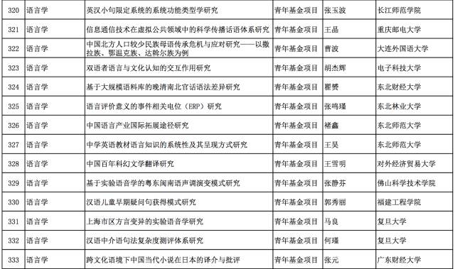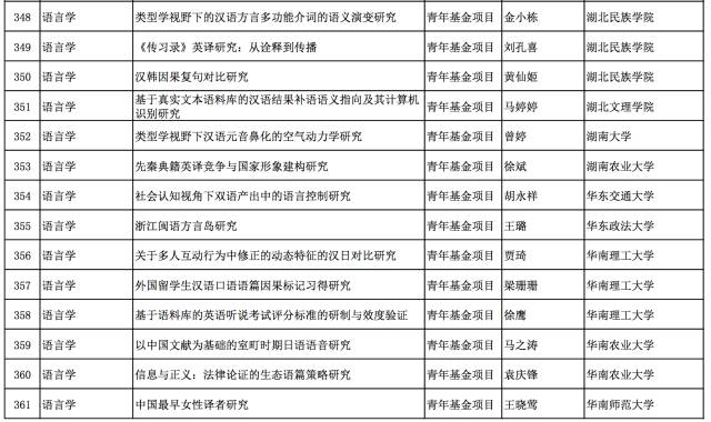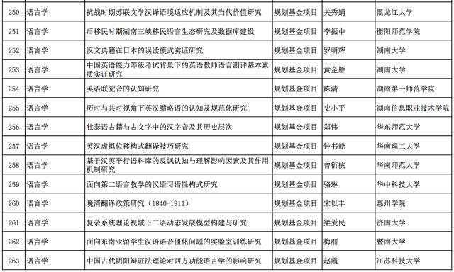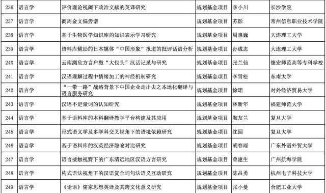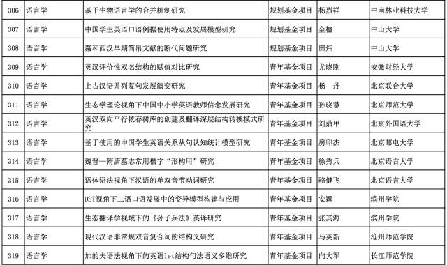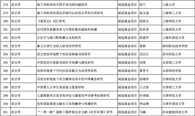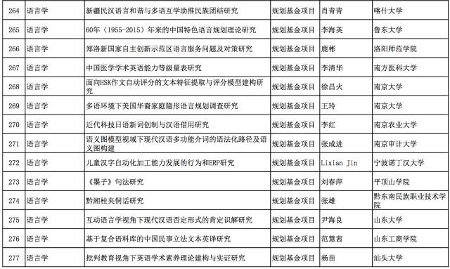 2017年度教育部人文社会科学研究规划基金、青年基金、自筹经费项目评审结果公示一览表(语言学)