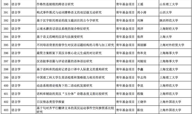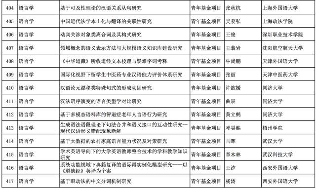 教育部社科司关于2017年度教育部人文社会科学研究一般项目评审结果的公示(语言学)