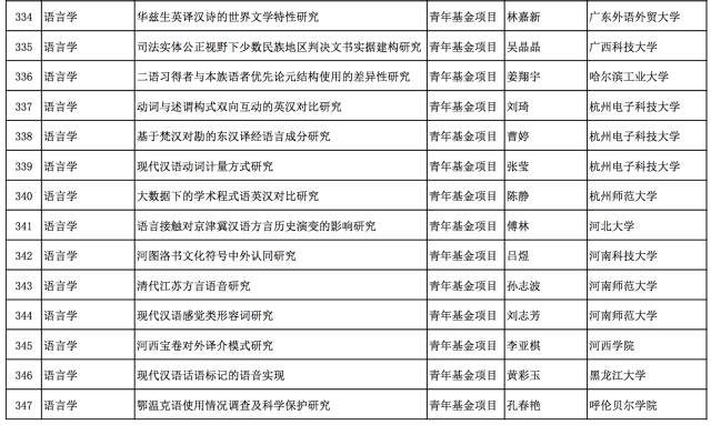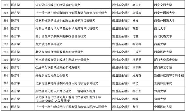 2017年度教育部人文社会科学研究西部和边疆地区项目评审结果公示一览表(语言学)