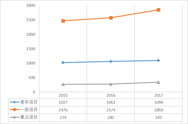 图1. 2015-2017年国家社科基金项目分部及趋势